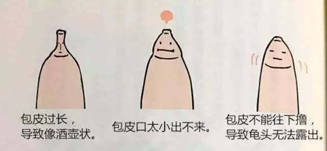 (2)包皮与龟头粘连,包皮不能上翻,即继发性包茎;